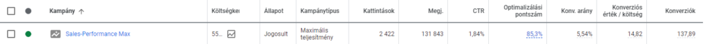 Miután ez megtörtént akkor kezdtem el használni a performance max hirdetéseket.